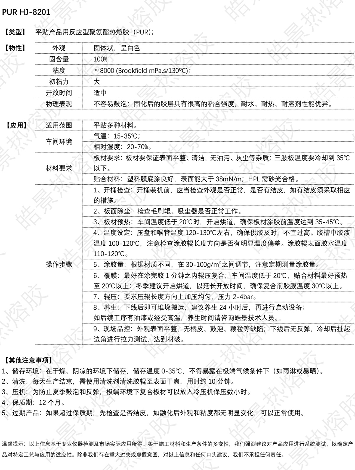 為了產(chǎn)品性能能充分匹配上膠需求,請(qǐng)?jiān)敿?xì)告知施工方式、上膠工藝、粘著材質(zhì)、產(chǎn)品應(yīng)用環(huán)境等要求,以便我們能給您推薦適用且性價(jià)比高的熱熔膠型號(hào)。只有了解您的每一項(xiàng)需求,我們才能用心服務(wù)好您的每個(gè)細(xì)節(jié),才能全力支持您的每一次飛躍!