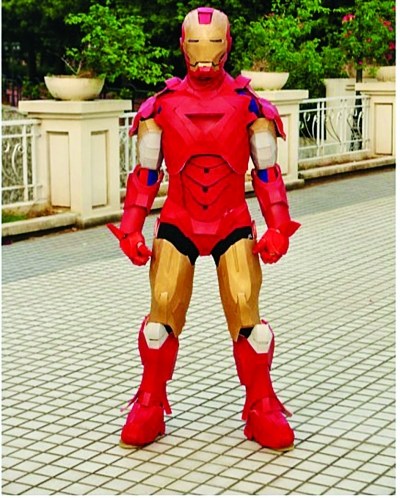 手工制成鋼鐵俠的是網(wǎng)友-Elis-,記者在他的新浪微博頁(yè)面上看到了讓人“眼紅”的鋼鐵俠組圖。記者聯(lián)系到了-Elis-,他是廣州大學(xué)華軟軟件學(xué)院大三的學(xué)生高俊源,今年21歲。談到制作鋼鐵俠的初衷,他說(shuō)單純是好玩兒。高俊源告訴記者,從有動(dòng)手制作的想法到完成,一共花費(fèi)了12天的時(shí)間,“都是利用業(yè)余時(shí)間完成的,作業(yè)多時(shí)就少花時(shí)間,沒(méi)事兒就多做一會(huì)兒。”為了做這個(gè),他從網(wǎng)上花了300元買來(lái)了原材料,然后按照1:1比例制作圖紙,“先是做頭盔,做到第三個(gè)頭才像點(diǎn)樣子,然后用雕刻刀把材料裁成胸、背、內(nèi)襯、腰和襠部,用包裝專用熱熔膠粘在一起組合成身子。”初步完成后,高俊源又從五金店買來(lái)原子粉補(bǔ)縫,最后噴漆上色大功告成。作品引起了不小的轟動(dòng),“同學(xué)們都來(lái)摸、拍,差點(diǎn)給拆了。”