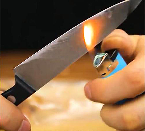二、用普通刀具,燒熱刀刃來切割。如果只是臨時想分割下熱熔膠塊,那是可以省下買電熱刀的錢的。只要準(zhǔn)備一把普通的刀具和一個火源,把刀刃放在火苗上燒,目的是要給刀刃加溫。當(dāng)?shù)度羞_到一定熱度后,嘗試往熱熔膠塊表面去切,要是不好切就繼續(xù)燒刀刃,直到能夠相對容易切割膠體為止。